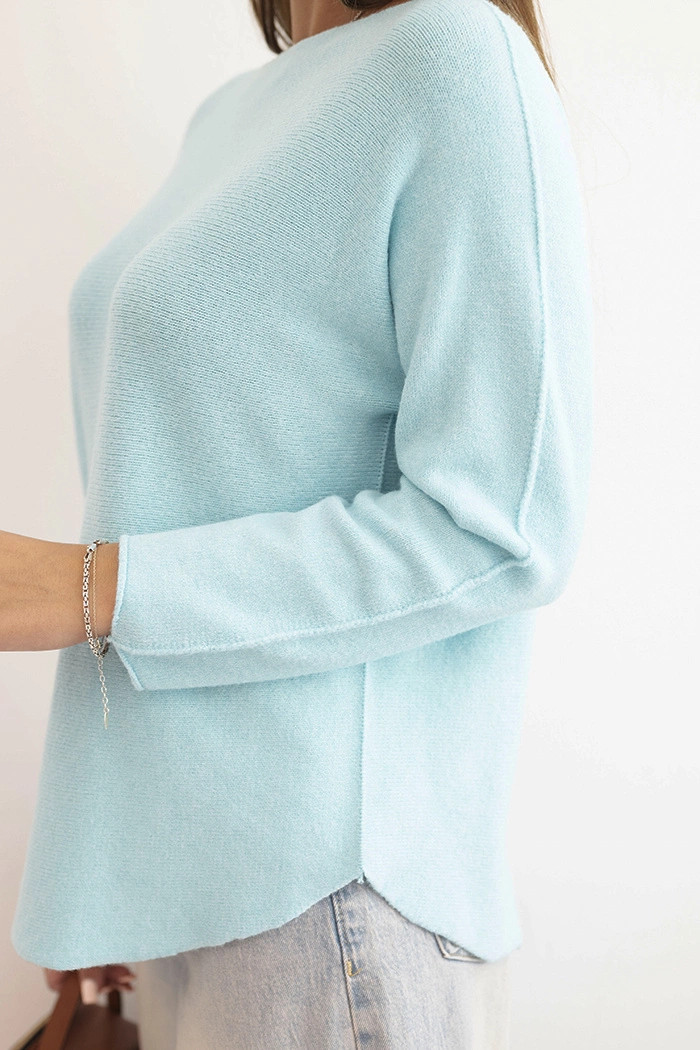 Dámský svetr z viskózy s dlouhým rukávem a kulatým výstřihem mátový
