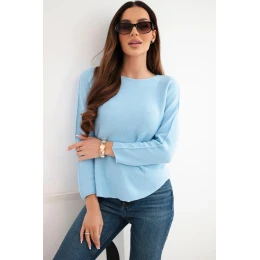 Dámský svetr z viskózy s dlouhým rukávem a kulatým výstřihem modrý