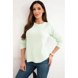 Dámský svetr z viskózy s dlouhým rukávem a kulatým výstřihem světle mátový