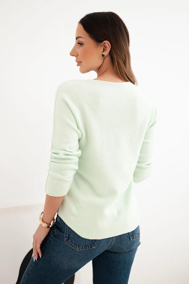 Dámský svetr z viskózy s dlouhým rukávem a kulatým výstřihem světle mátový