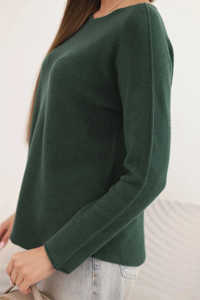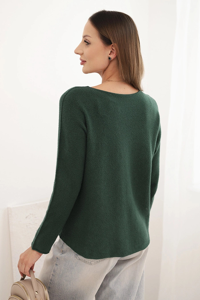 Dámský svetr z viskózy s dlouhým rukávem a kulatým výstřihem tmavě zelený