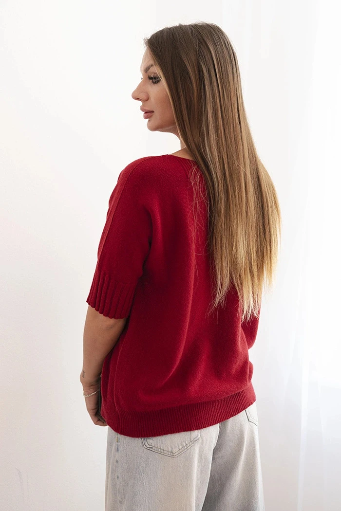 Dámský svetr z viskózy s krátkým rukávem bordový