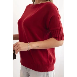 Dámský svetr z viskózy s krátkým rukávem bordový