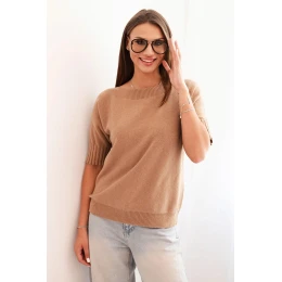 Dámský svetr z viskózy s krátkým rukávem camelový