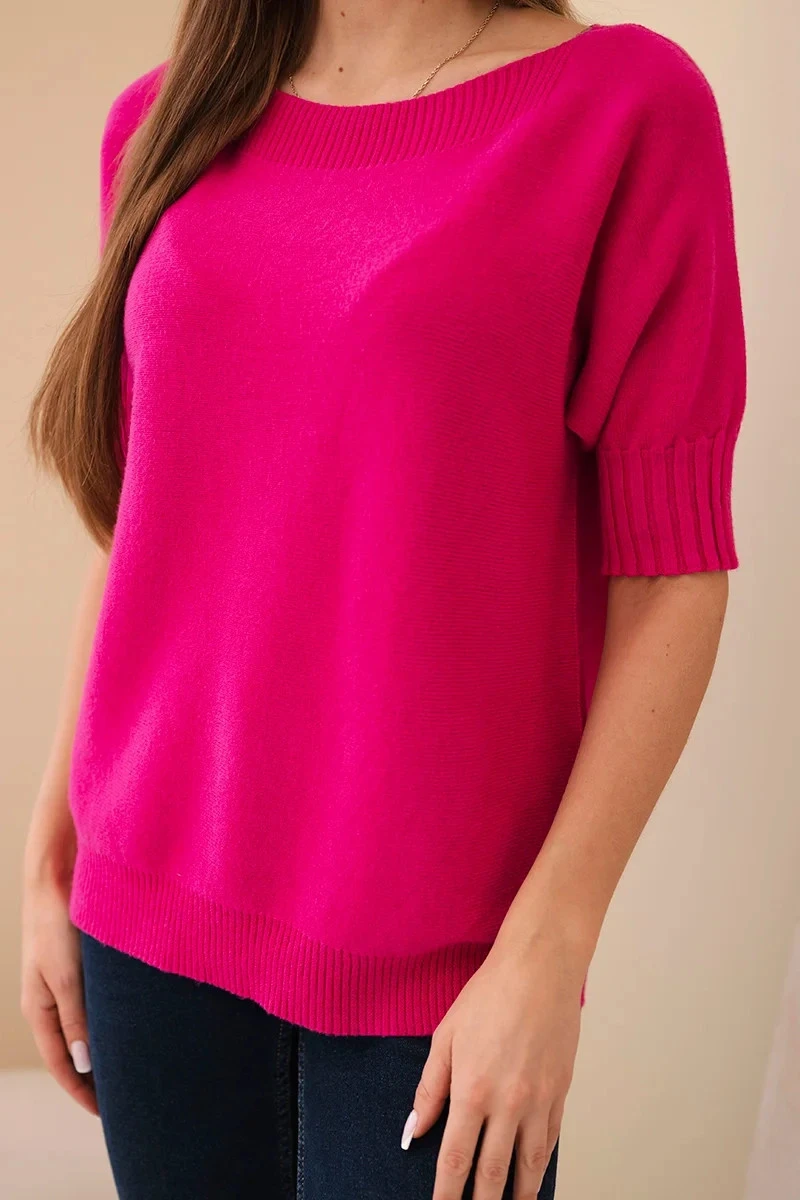 Dámský svetr z viskózy s krátkým rukávem fuchsie