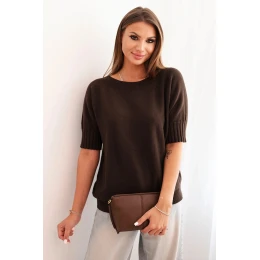 Dámský svetr z viskózy s krátkým rukávem hnědý