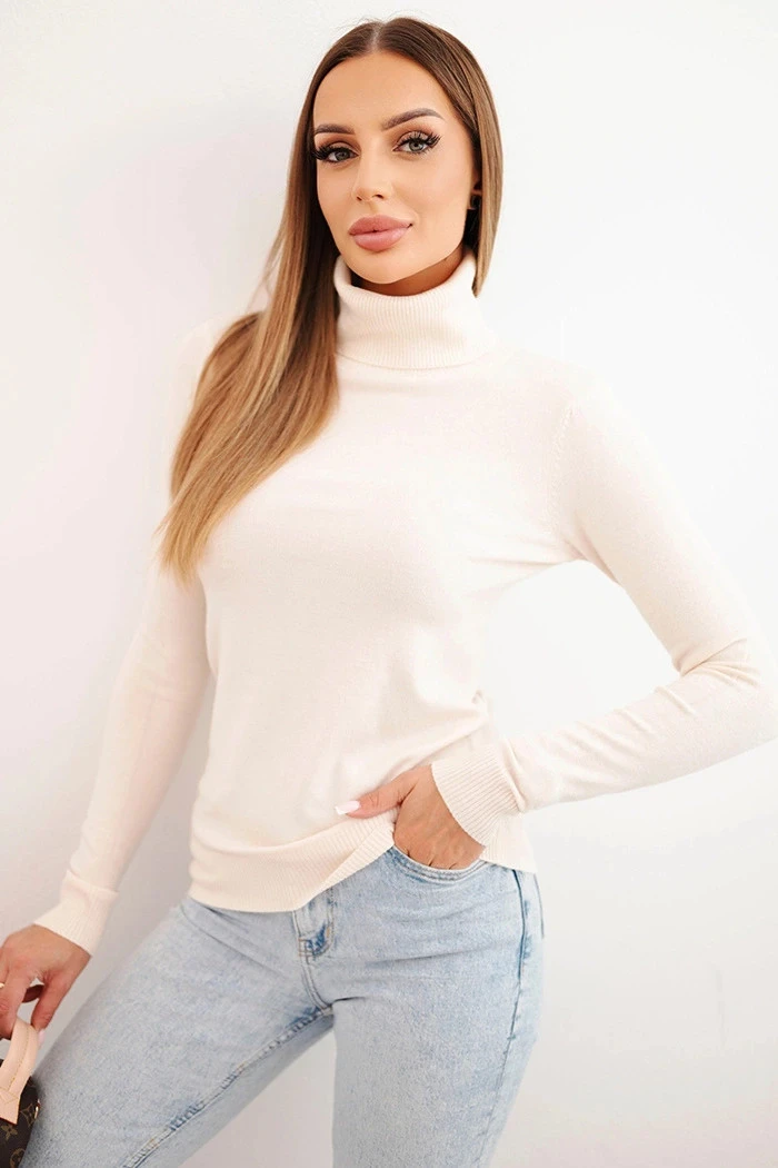 Dámský svetr z viskózy s rolákem a dlouhým rukávem béžový