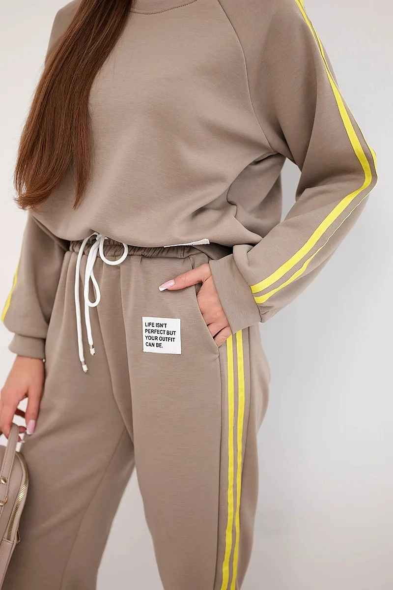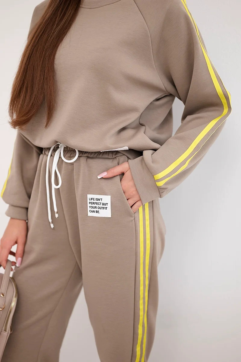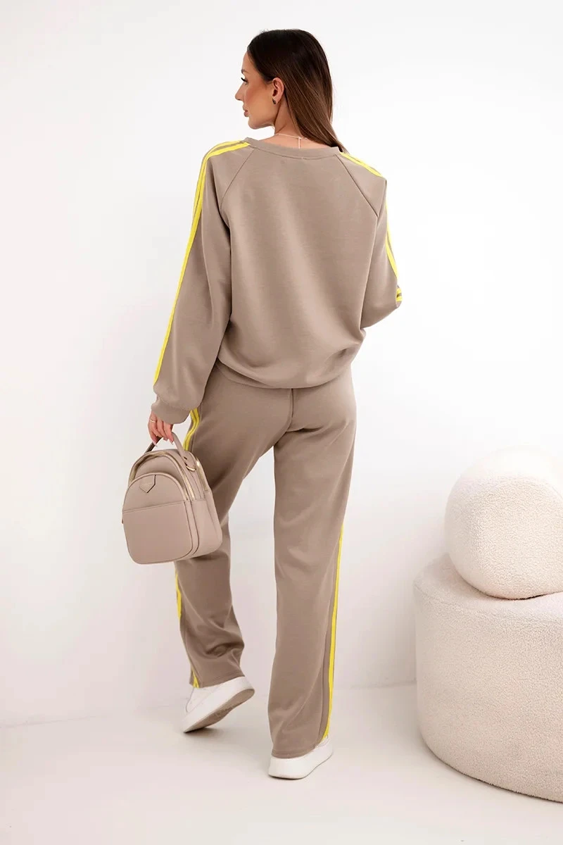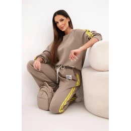 Dámský teplákový komplet Masełko s lampasy a volnou mikinou fango