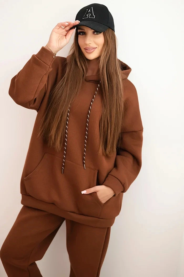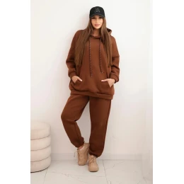 Dámský teplákový komplet model 21441628 z bavlny s kapucí camelový - K-Fashion