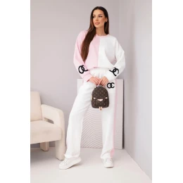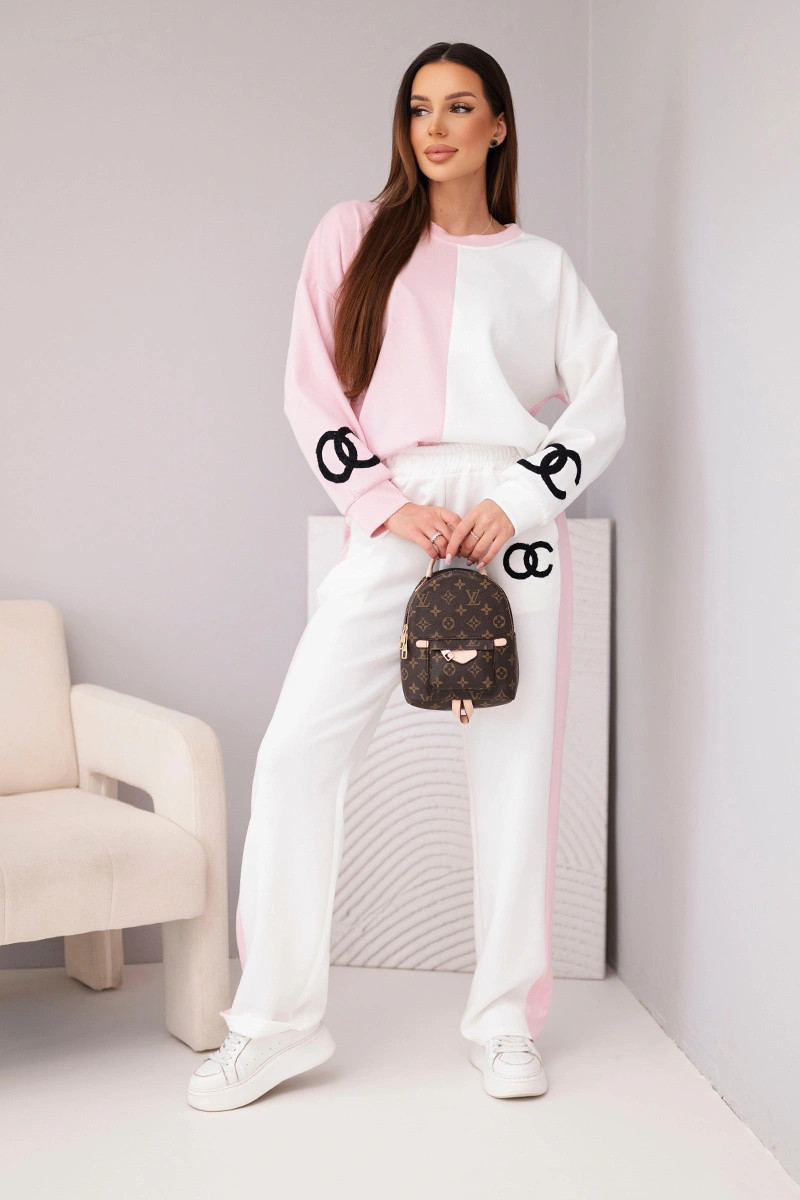 Dámský teplákový komplet s oversized mikinou a rovnými kalhotami pudrově model 21951989 - K-Fashion