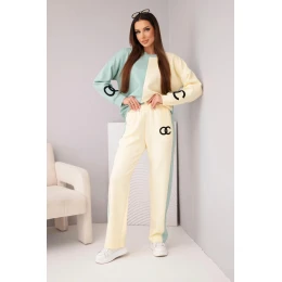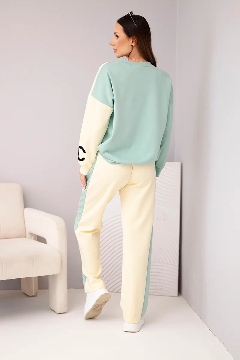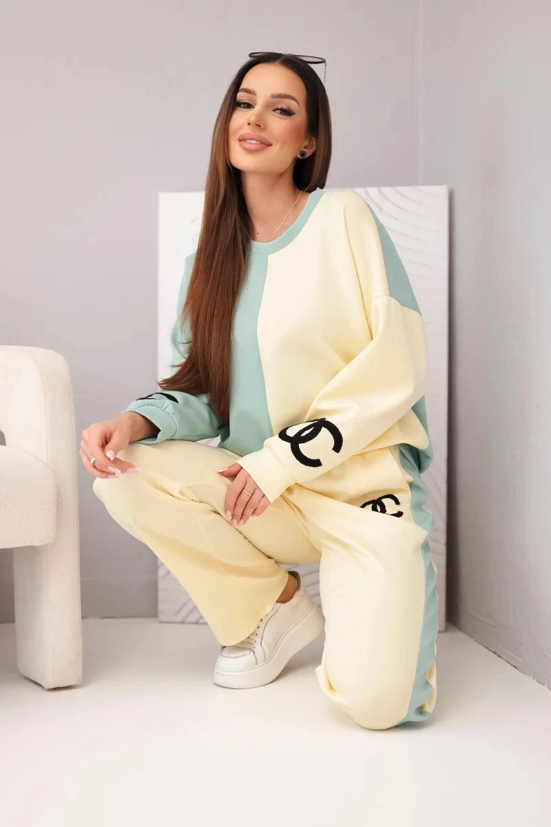 Dopřejte si pohodlí v módním stylu s tímto dámským maslovým dresem! Tento jedinečný komplet okouzlí neobvyklou kombinací pastelových barev – béžové a modré – vytvářející svěží, ženskou stylizaci ideální na každý den. Volná mikina oversize a kalhoty s rovnou nohavicí a elastickým pasem zajišťují maximální komfort nošení. Výšivka na přední straně dodává sportovní šmrnc a jedinečný akcent.