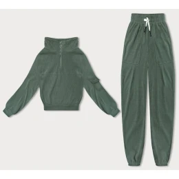 Dámský teplákový komplet typu "wafel" v olivové barvě (AMG-339A)