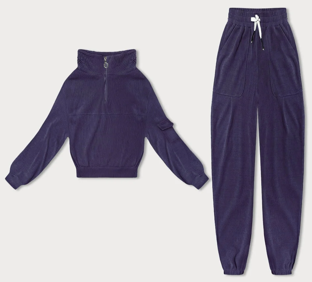 Dámský teplákový komplet typu "wafel" ve švestkové barvě (AMG-339A)