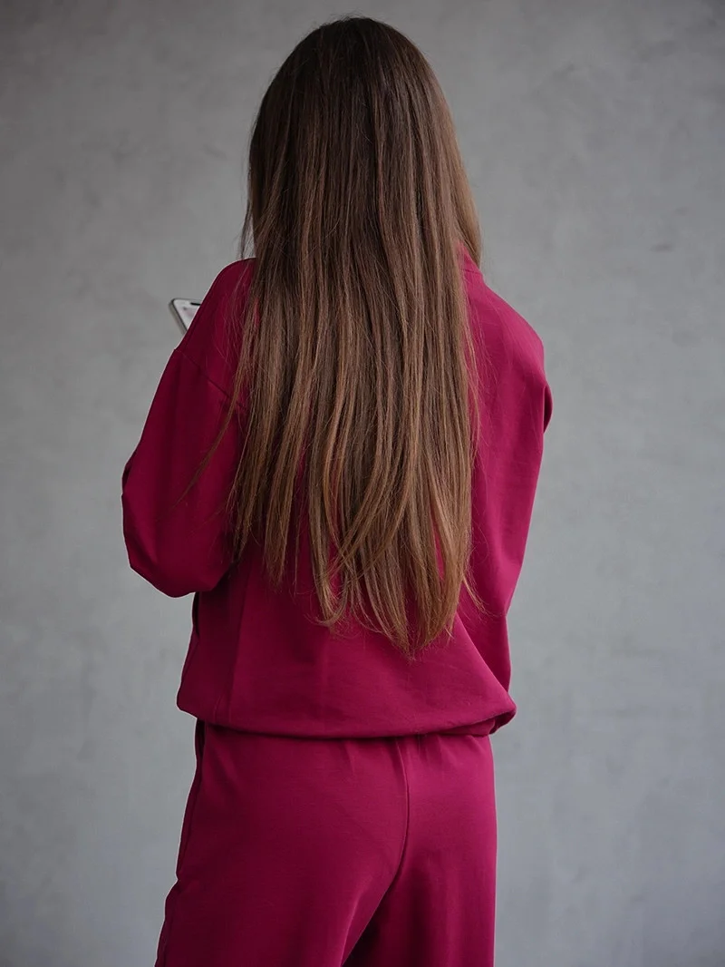 Přidání recenze k Dámský teplákový komplet ve vínové bordó barvě mikina se stojáčkem a kalhoty model 21802225 - Moon