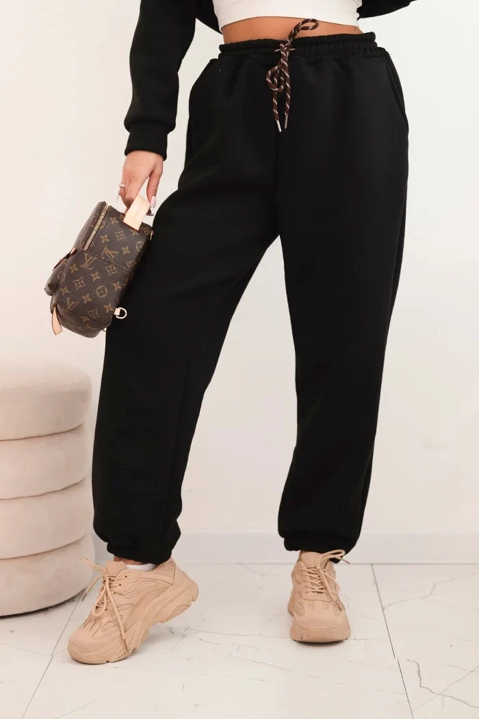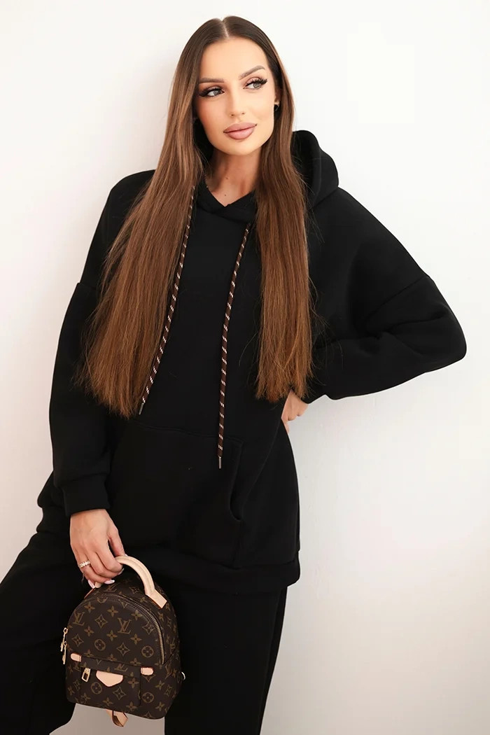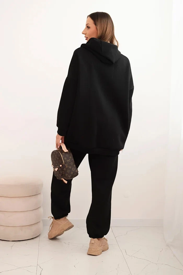 Dámský teplákový komplet zateplený z bavlny s kapucí černý