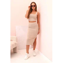Dámský top a model 22077133 sukně béžový - K-Fashion