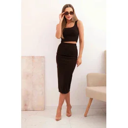 Dámský top a vroubkovaný sukně hnědý