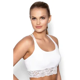 Dámský sportovní top. Ušitá z kvalitní bavlny s přídavkem elastických vláken. Má tenká, dvojtá ramínka, na zádech zkřížená. Spodní část je zdobená pruhem krajky. Vzadu logo.