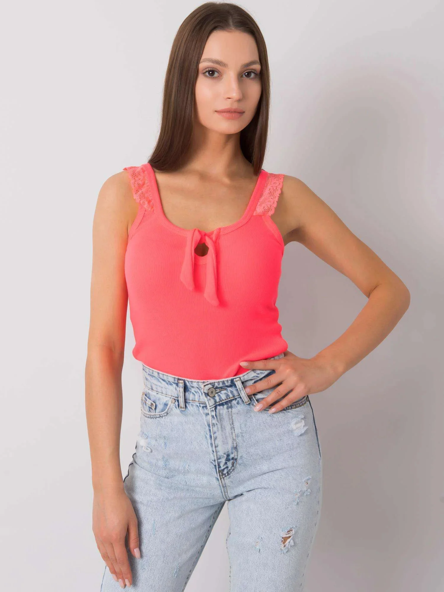 Fluo růžový asymetrický top.