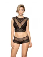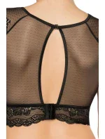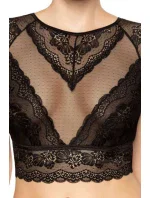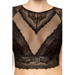 Dámský top Ellba ROZA - černá barva - vyrobený z krajky a puntíkovaného tylu - průhledný výstřih - krajkové rukávkyMateriálové složení: 85% polyamid + 10% elastan + 5% bavlna