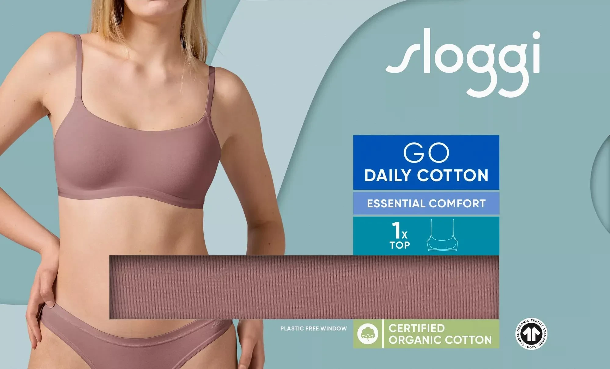 Tento bavlněný top GO Daily Cotton je vyroben ze super měkké česané organické bavlny a stane se vaším novým oblíbeným kouskem na každý den! Dvouvrstvé tvarované košíčky a nastavitelná ramínka poskytují lehkou oporu, zatímco hladký elastický pásek pod poprsím dodává podprsence moderní vzhled.