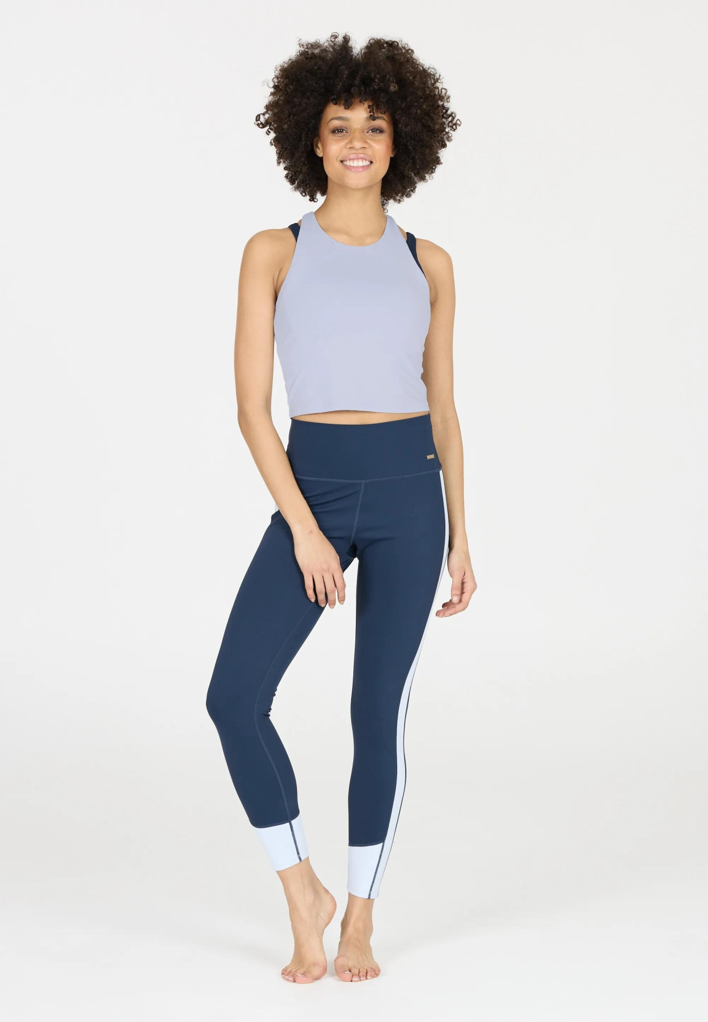 Přiléhavý střih s vysokým kulatým výstřihem perfektně obepne tělo a poskytuje oporu i pohodlí při jakémkoli pohybu.