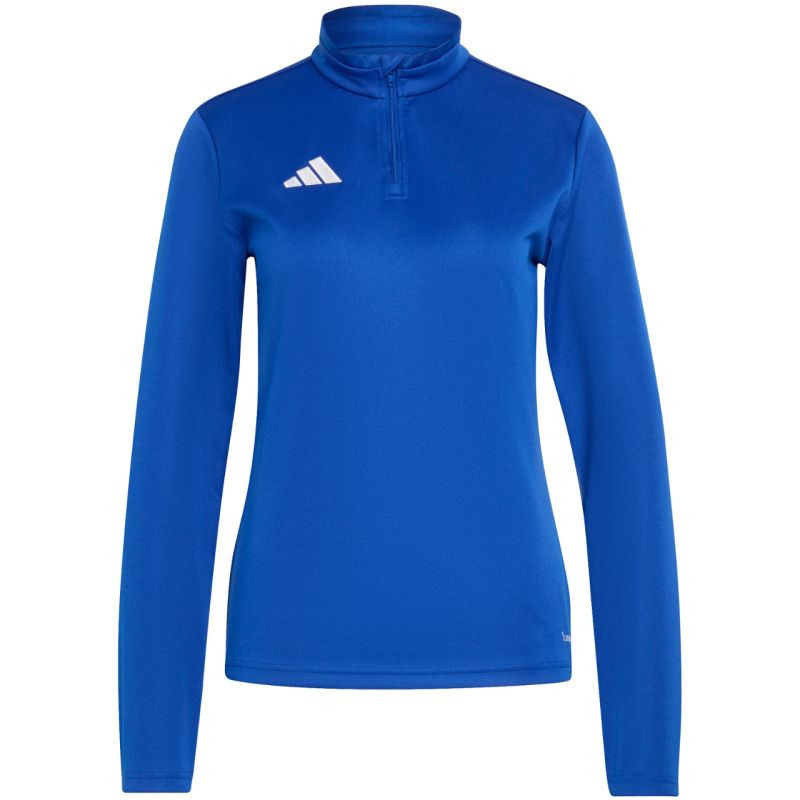Dámská mikina adidas Entrada 26 Training Top modrá JZ6641 Tato dámská mikina adidas je ideální na trénink, má střih na míru, krátký zip, technologii Climacool pro odvod a rozptyl potu a vyšité logo. Materiál: 100% recyklovaný polyester.