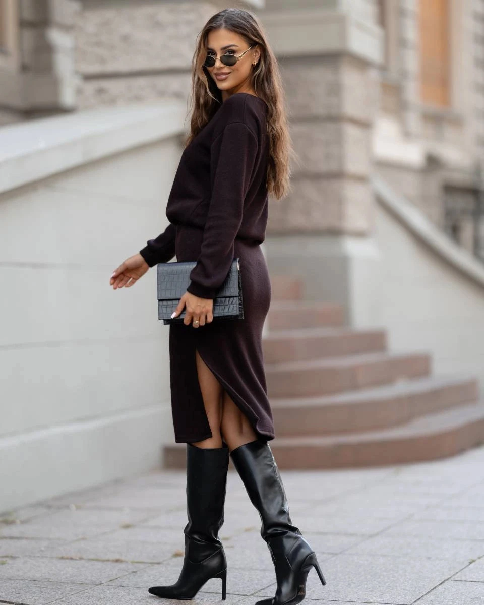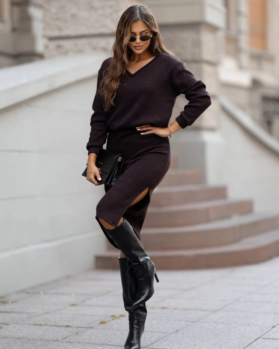 Přidání recenze k Dámský úpletový komplet v čokoládové barvě se sukní (82103)