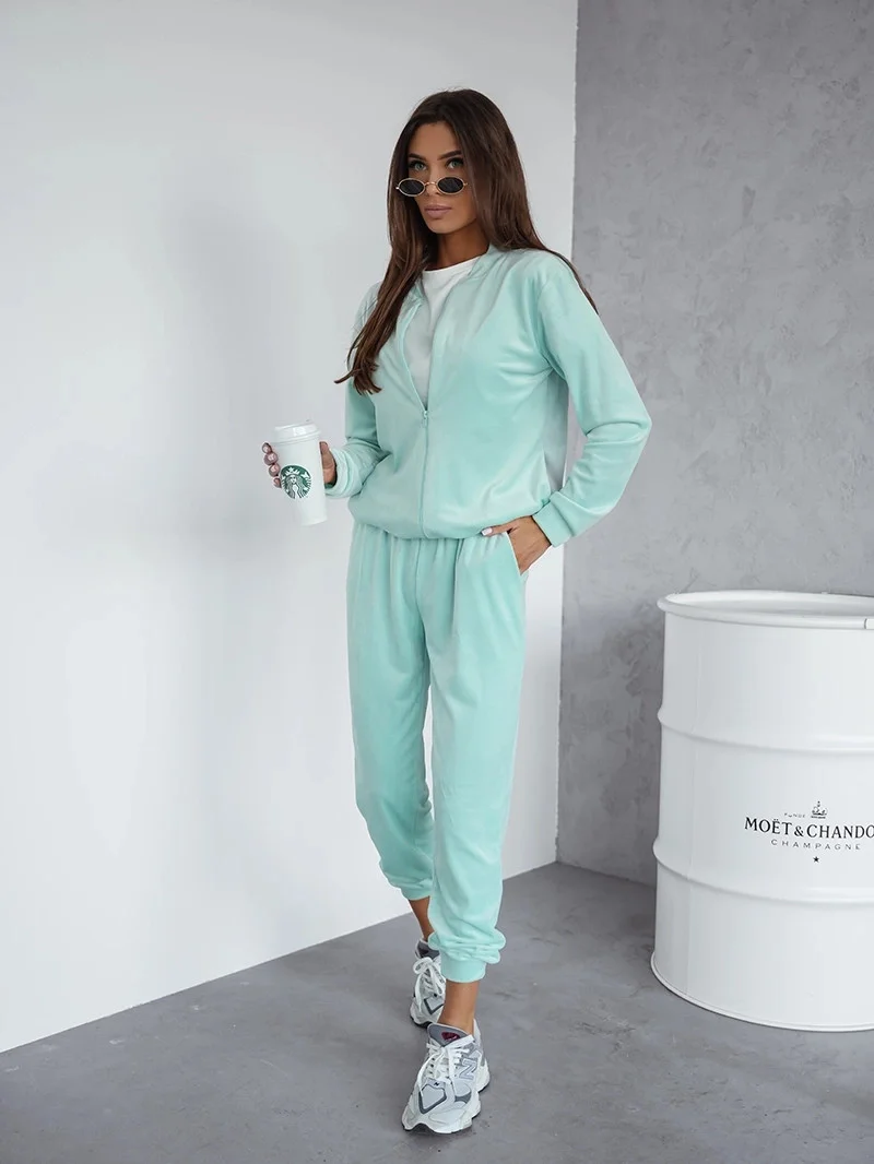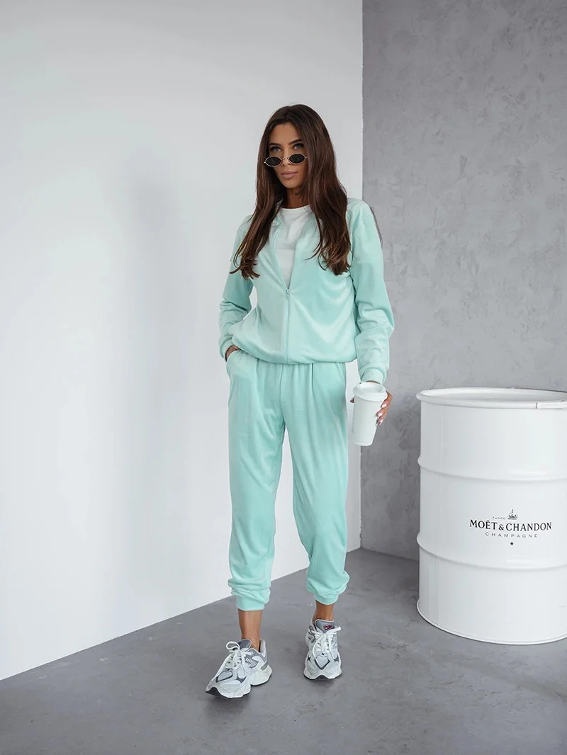 Dámský velurový komplet v mátové barvě s rozepínací mikinou model 20980101 - Moon