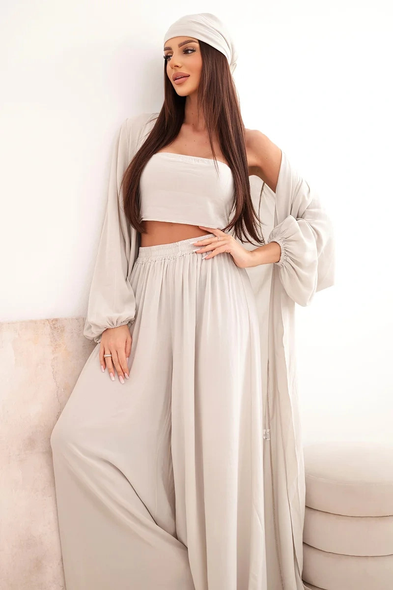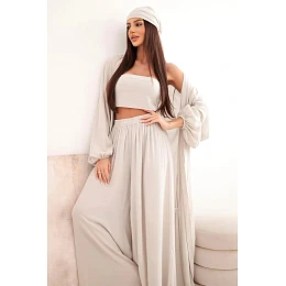 Dámský viskózový 4dílný komplet v boho stylu tmavě béžový