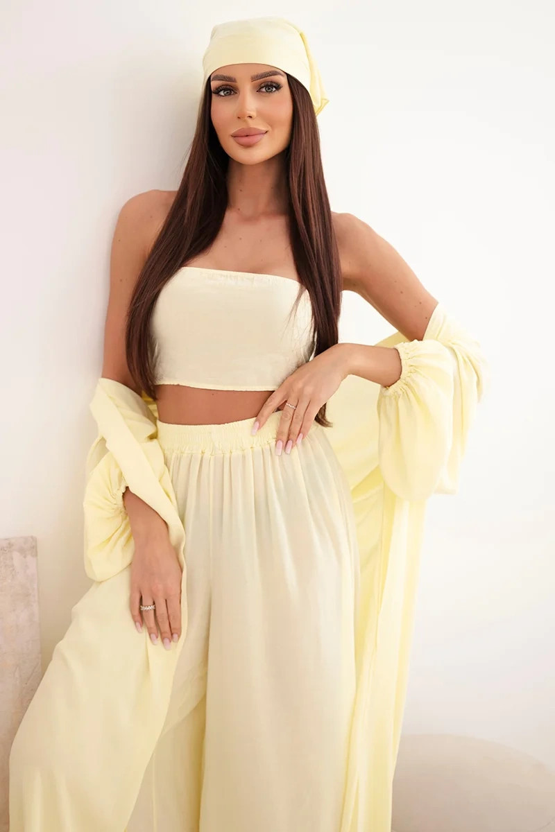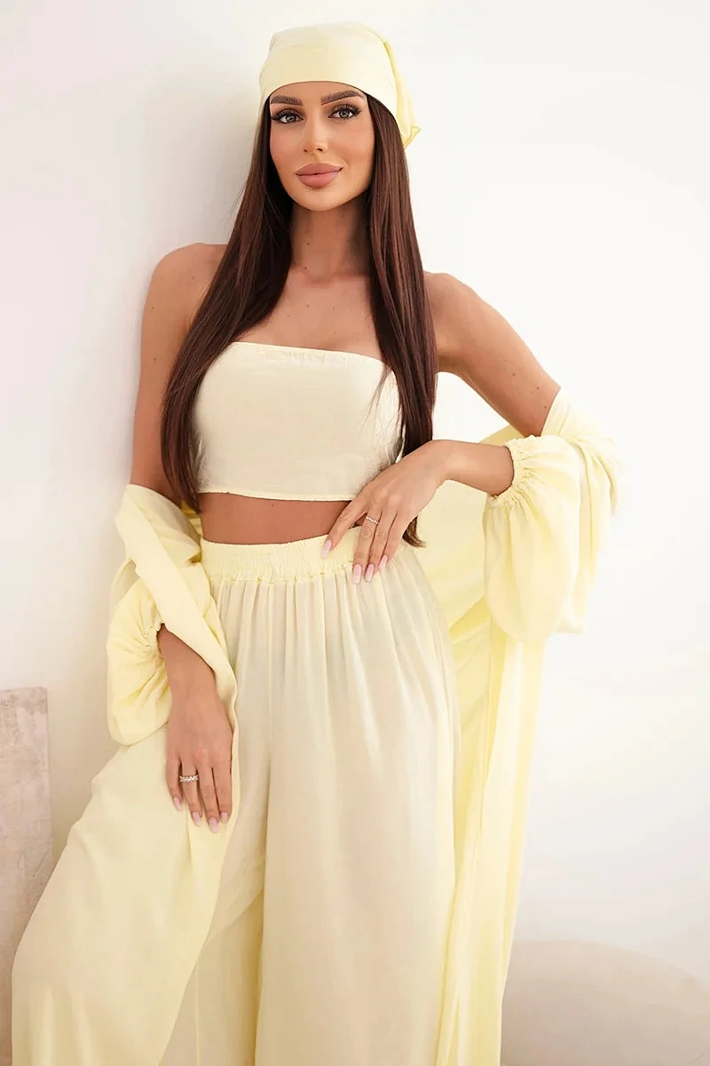 Dámský viskózový 4dílný komplet v boho stylu žlutý