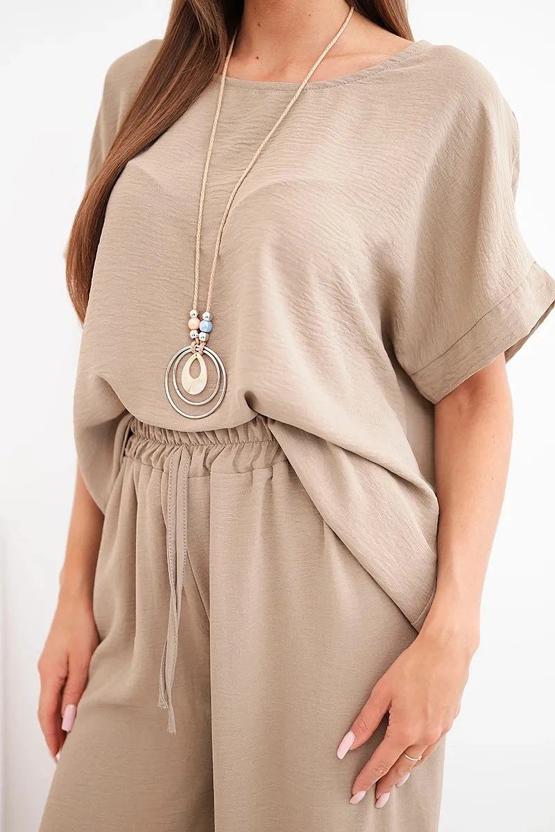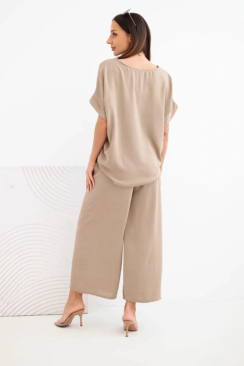 Dámský viskózový komplet: halenka s krátkým rukávem a kalhoty se širokou nohavicí fango