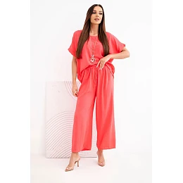 Dámský viskózový komplet halenka s krátkým rukávem a kalhoty se širokými nohavicemi model 22128649 - K-Fashion