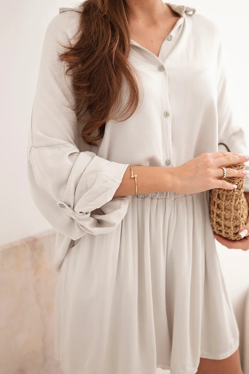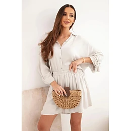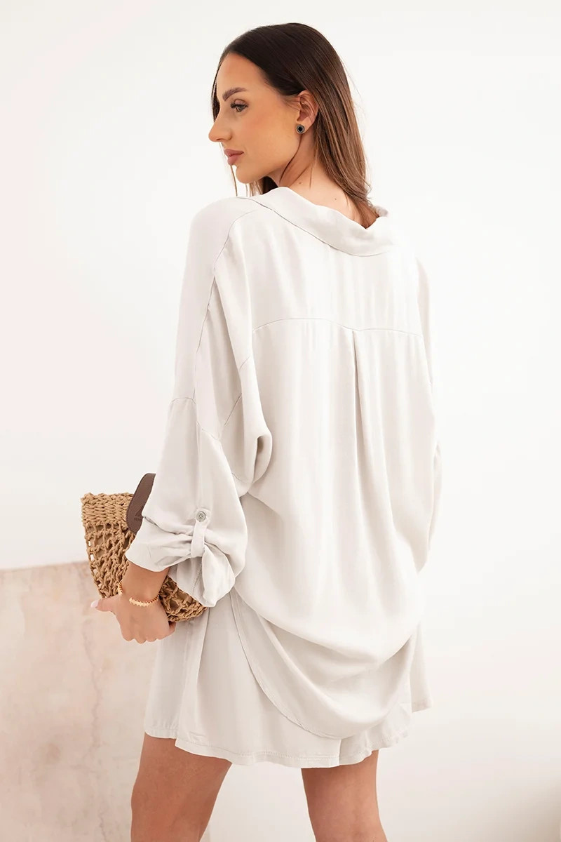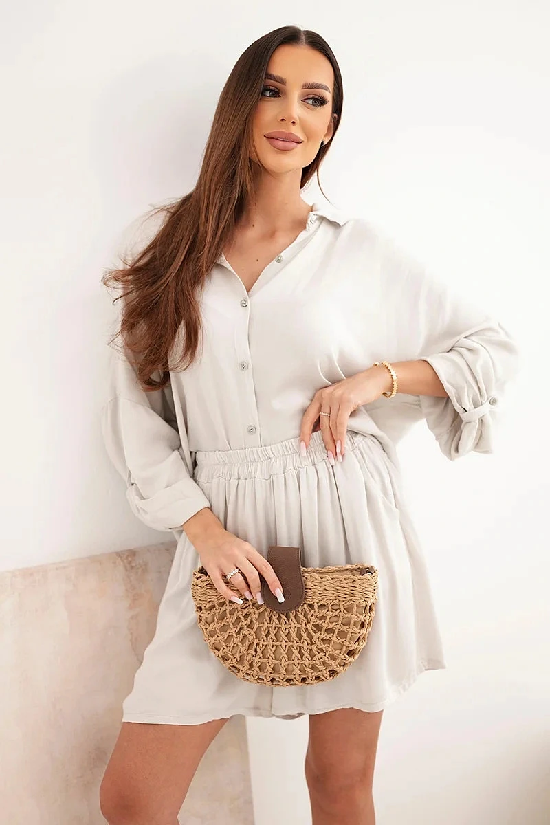 Dámský viskózový komplet košile s knoflíky a volné kraťasy béžový