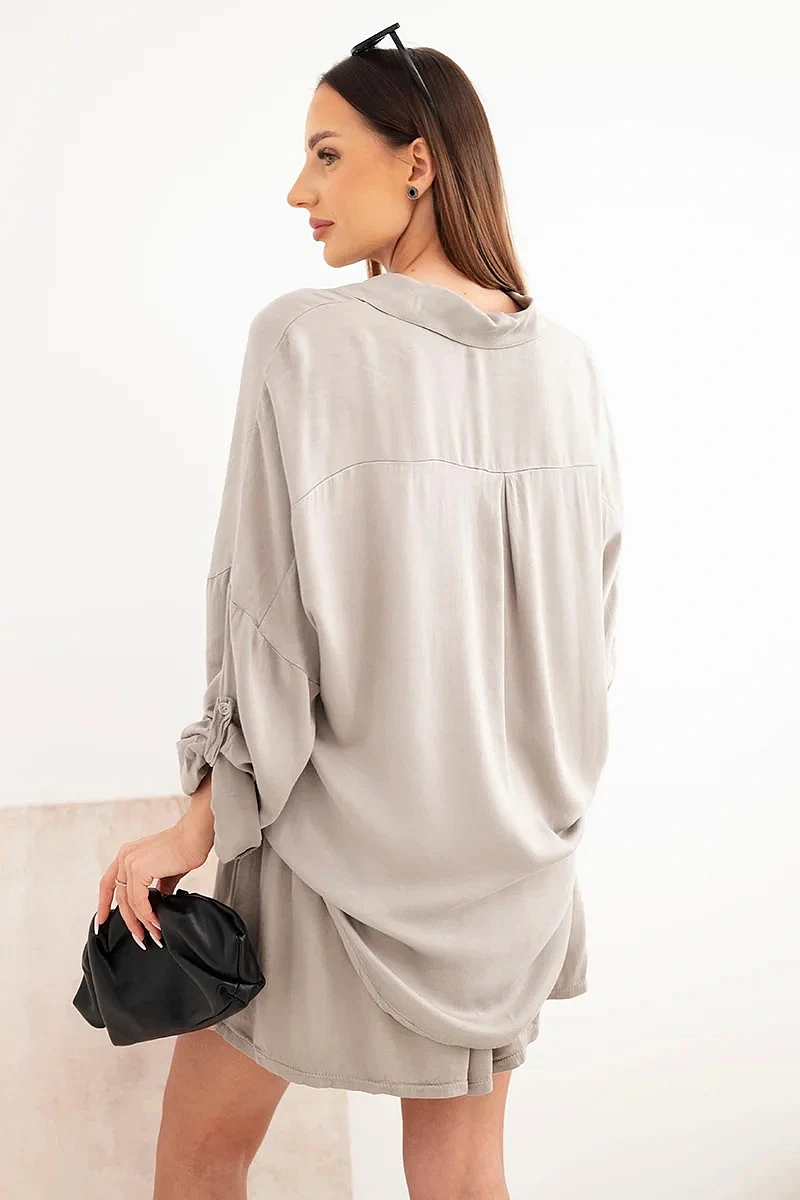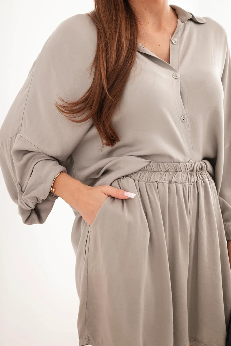 Dámský viskózový komplet košile s knoflíky a volné kraťasy fango