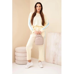 Stylová dámská tepláková souprava je ideální volbou pro ženy, které si cení pohodlí a módního vzhledu v každodenních outfitech. Souprava se skládá z volné mikiny s dlouhým rukávem a kalhot s elastickým pasem a efektními lampasy po bocích. Je to skvělá volba jak na každý den, do práce v neformálním stylu, tak na procházku nebo výlet.