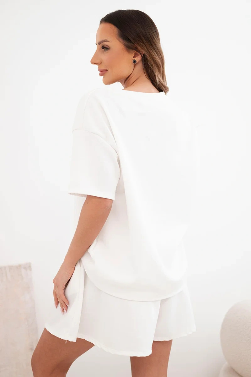Dámský viskózový komplet máslový s krátkým rukávem a kraťasy s vysokým pasem ecru