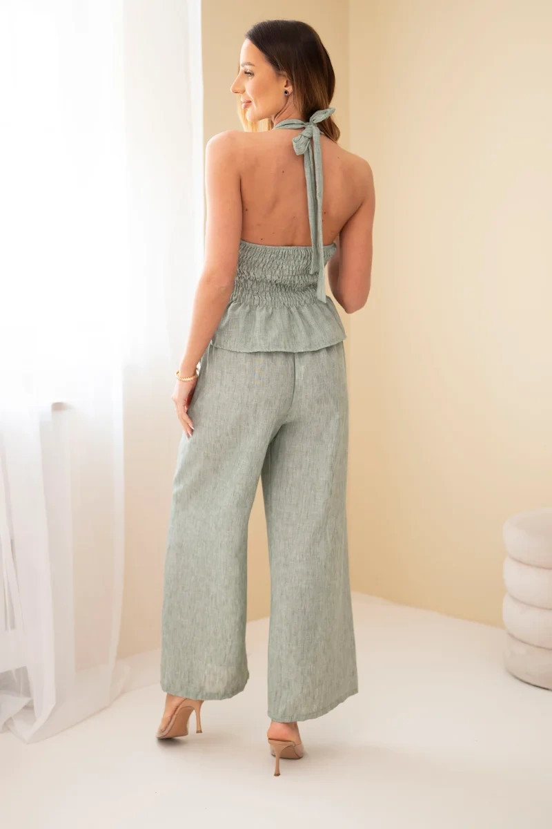 Dámský viskózový komplet – model 22079421 top a kalhoty se širokými nohavicemi khaki - K-Fashion