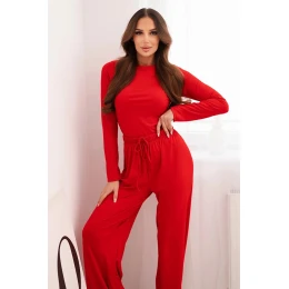Dámský viskózový komplet s blůzkou a širokými kalhotami červený
