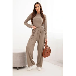 Dámský viskózový komplet s blůzou a širokými kalhotami fango