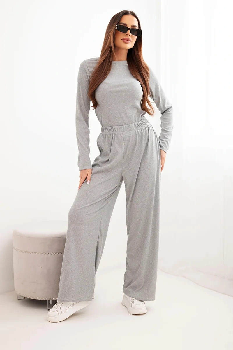 Hledáte pohodlnou a stylovou soupravu na každý den? Tento dámský komplet s dlouhým rukávem a širokými kalhotami je ideální volbou pro ženy, které si cení komfortu a módního vzhledu. Vyrobeno z měkké viskózy s přídavkem elastanu, skvěle se přizpůsobí postavě, aniž by omezovalo pohyb. Halenka jednoduchého střihu s dlouhým rukávem se dokonale hodí k širokým kalhotám s elastickým pasem na gumu. Je to skvělá volba jak na relaxaci doma, tak na volné vycházky do města.
