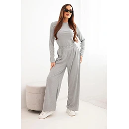 Hledáte pohodlnou a stylovou soupravu na každý den? Tento dámský komplet s dlouhým rukávem a širokými kalhotami je ideální volbou pro ženy, které si cení komfortu a módního vzhledu. Vyrobeno z měkké viskózy s přídavkem elastanu, skvěle se přizpůsobí postavě, aniž by omezovalo pohyb. Halenka jednoduchého střihu s dlouhým rukávem se dokonale hodí k širokým kalhotám s elastickým pasem na gumu. Je to skvělá volba jak na relaxaci doma, tak na volné vycházky do města.