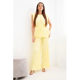 Dámský viskózový komplet s blůzou a širokými kalhotami žlutý model 22025246 - K-Fashion