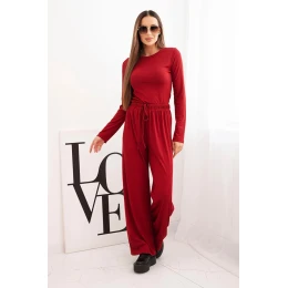 Dámský viskózový komplet s halenkou a širokými kalhotami bordový