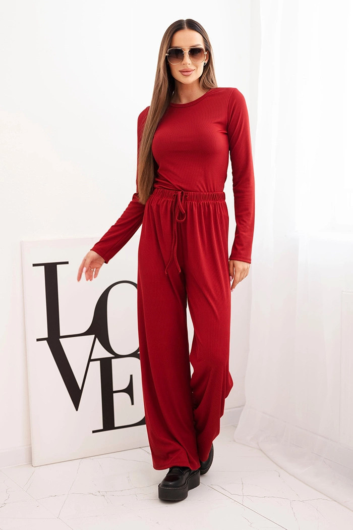 Dámský viskózový komplet s halenkou a širokými kalhotami bordový