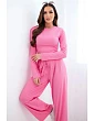 Hledáte pohodlnou a stylovou soupravu na každý den? Tento dámský komplet s dlouhým rukávem a širokými kalhotami je ideální volbou pro ženy, které si cení komfortu a módního vzhledu. Vyrobeno z měkké viskózy s přídavkem elastanu, skvěle se přizpůsobí postavě, aniž by omezovalo pohyb. Halenka jednoduchého střihu s dlouhým rukávem se dokonale hodí k širokým kalhotám s elastickým pasem na gumu. Je to skvělá volba jak na relaxaci doma, tak na volné vycházky do města.