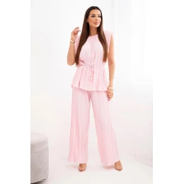Dámský viskózový komplet s halenkou a širokými kalhotami cukrově růžová model 22025280 - K-Fashion