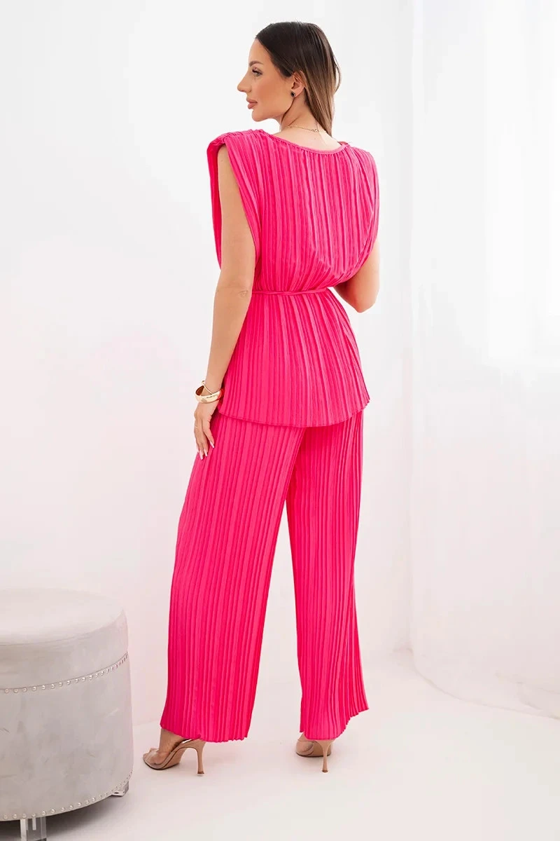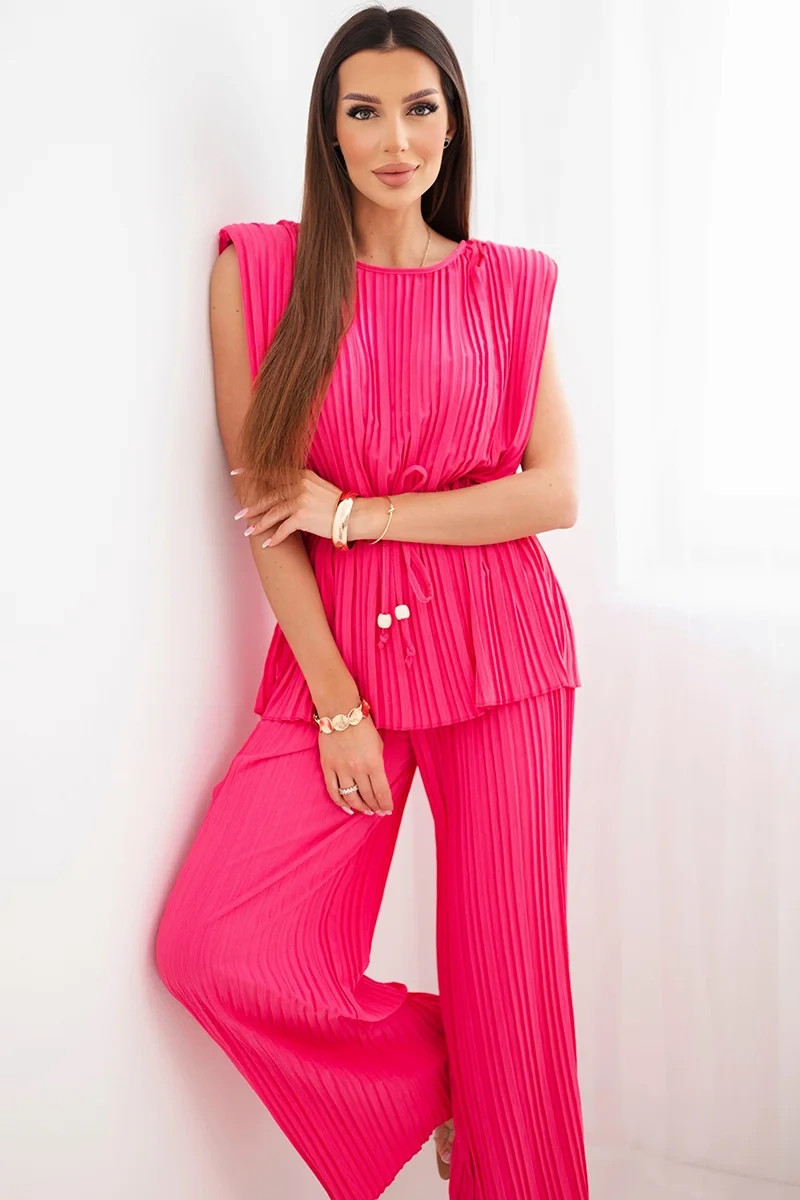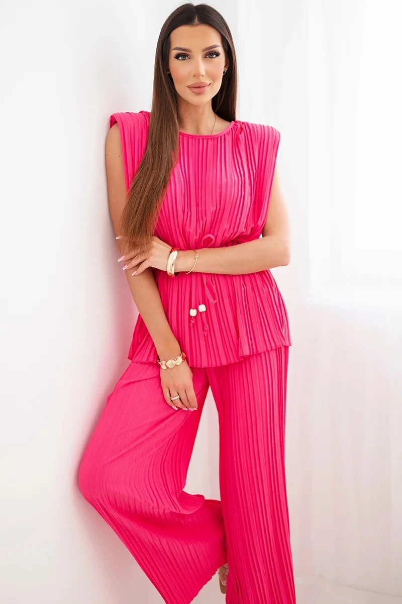 Dámský viskózový komplet s halenkou a širokými kalhotami růžový model 22025284 - K-Fashion