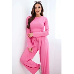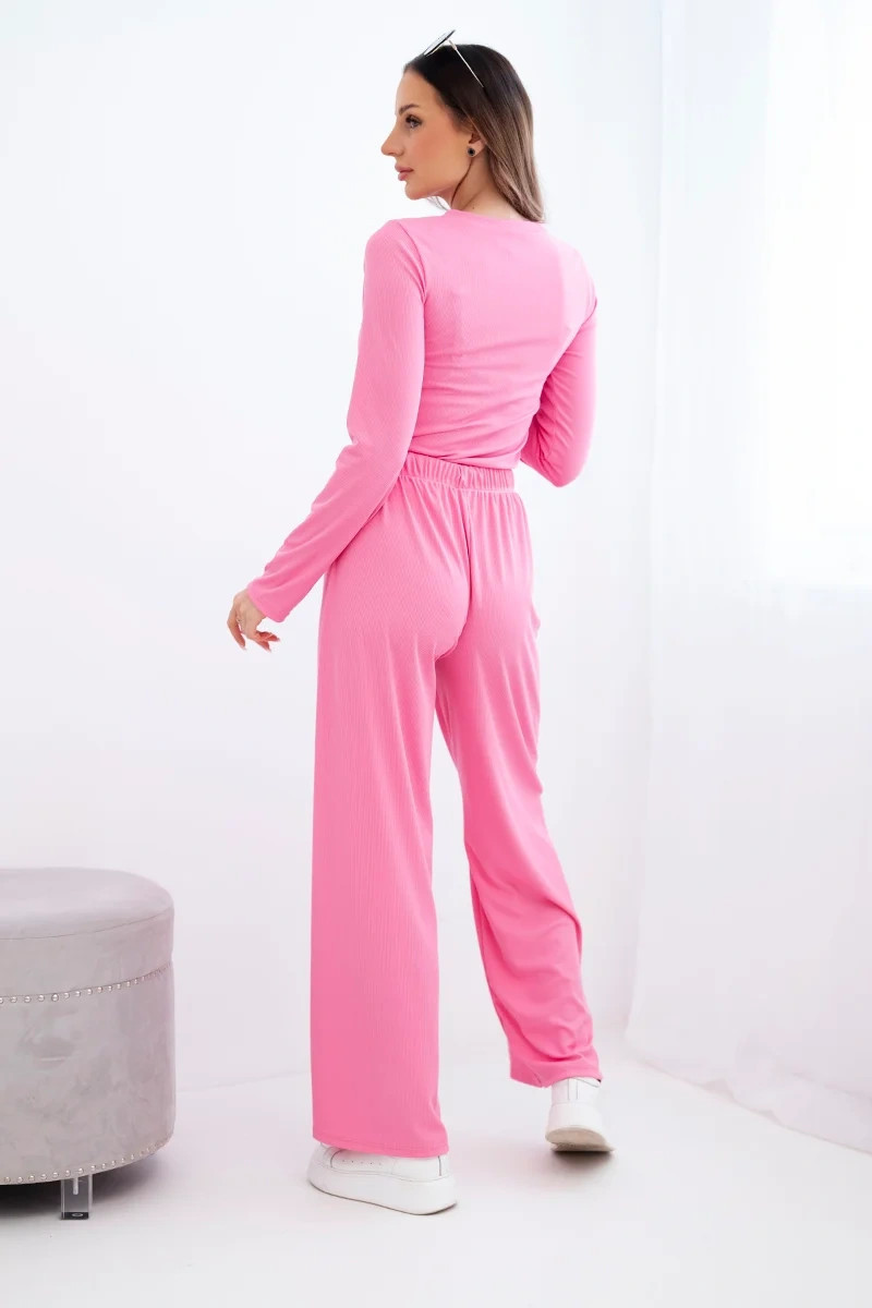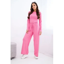Dámský viskózový komplet s halenkou a širokými kalhotami světle růžový