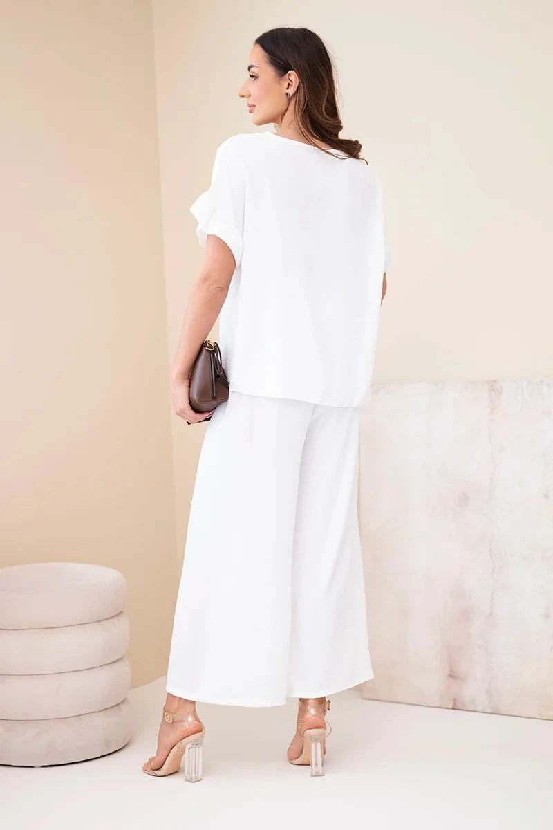 Dámský viskózový komplet s halenkou s potiskem a kalhotami bílý
